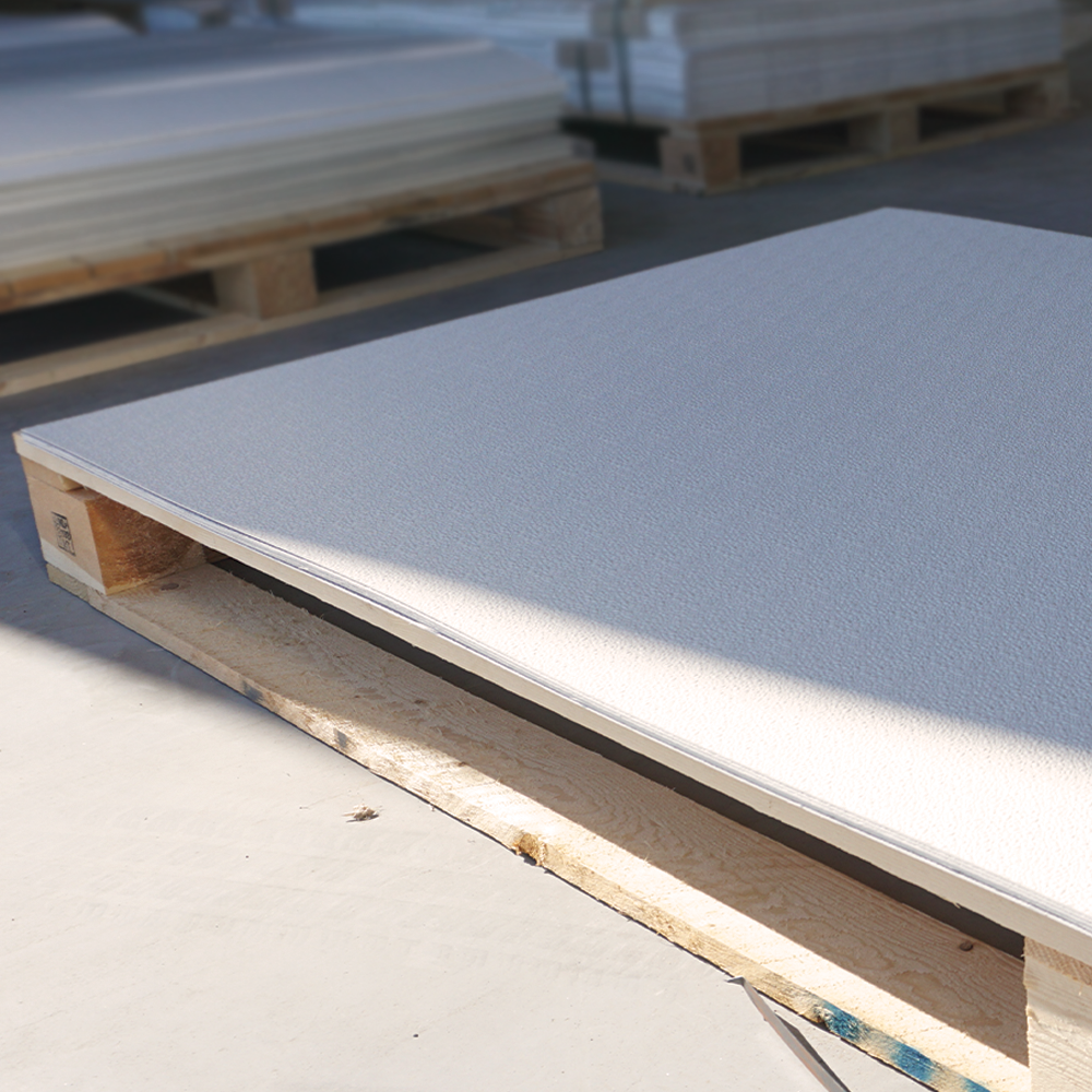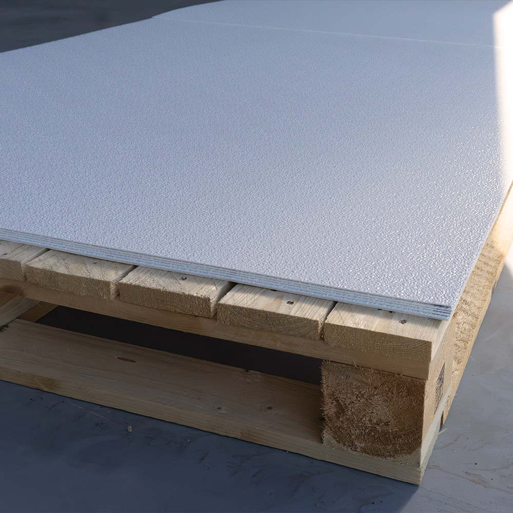 De FPS Embossed Sheet is een hoogwaardige glasvezelversterkte plaat met een robuust reliëfoppervlak. De thermohardende kunstharsbasis in combinatie met glasvezelversterking (300–1000 g/m²) zorgt voor een duurzame en vormvaste wand- en plafondoplossing. Door de reliëfstructuur wordt water efficiënt afgevoerd en hecht schuim beter tijdens het reinigen.