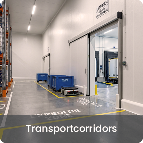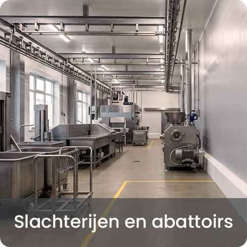 De oplossing sluit aan op slachterijen, uitsnijderijen, vrieshuizen, verpakkingsafdelingen en logistieke routes met impact, vocht en intensieve reiniging.