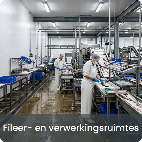 In visverwerking krijgen wanden dagelijks te maken met vocht, temperatuurverschillen en intensieve reiniging. Tegelwerk lijkt een logische keuze, maar voegen vervuilen, tegels raken los en beschadigingen ontstaan snel door karren, bakken en pallets. In ruimtes zoals fileerlijnen, verpakkingszones en koelcellen leidt dit tot terugkerende problemen die moeilijk schoon te houden zijn en steeds opnieuw hersteld moeten worden.